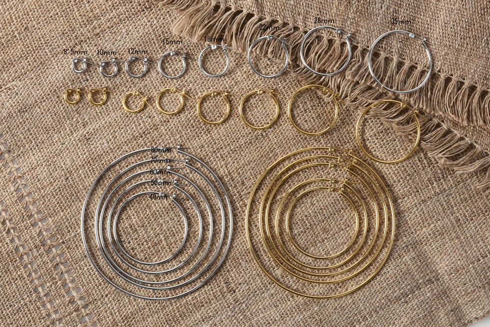 商品情報 素材 本体他全て真鍮 肌に優しい(Niフリーアレルギー対応) サイズ 線径1.5mm 外径※選択項目参照※【新作サイズピンクゴールド】アレルギー対応 ピアス 工場直販 2個で1セット フープピアス 選べる3色6型 丸線1.5ミリ アレルギー対応【肌に優しい】金属アレルギー/格安/激安/高品質/ノンアレルギー/フープピアス/遮断機/ピンクゴールド 日本製 メイドインジャパン 入学式 卒業式 職場用 アレルギー対応丸線1.5ミリフープピアス 定番の遮断機タイプのピアスです。