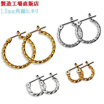 ※新作ピンクゴールド アレルギー対応 1,5ミリ 角線 ヒネリ ピアス 工場直販 2個で1セット フープピアス 選べる3色4サイズ